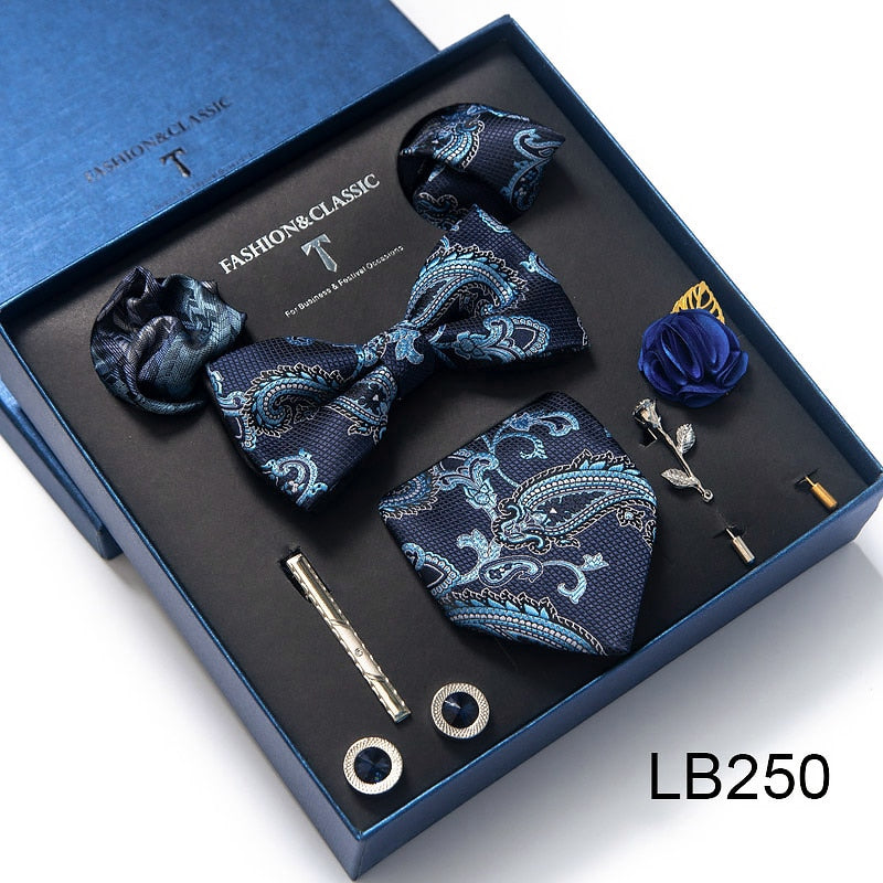 Luxury Silk Tie Set Gift Box for Men (8pcs Inside Packing Festive Present Cravat Pocket Squares)