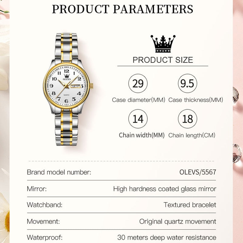 Original Luxury Waterproof Stainless Steel Quartz Watch for Women